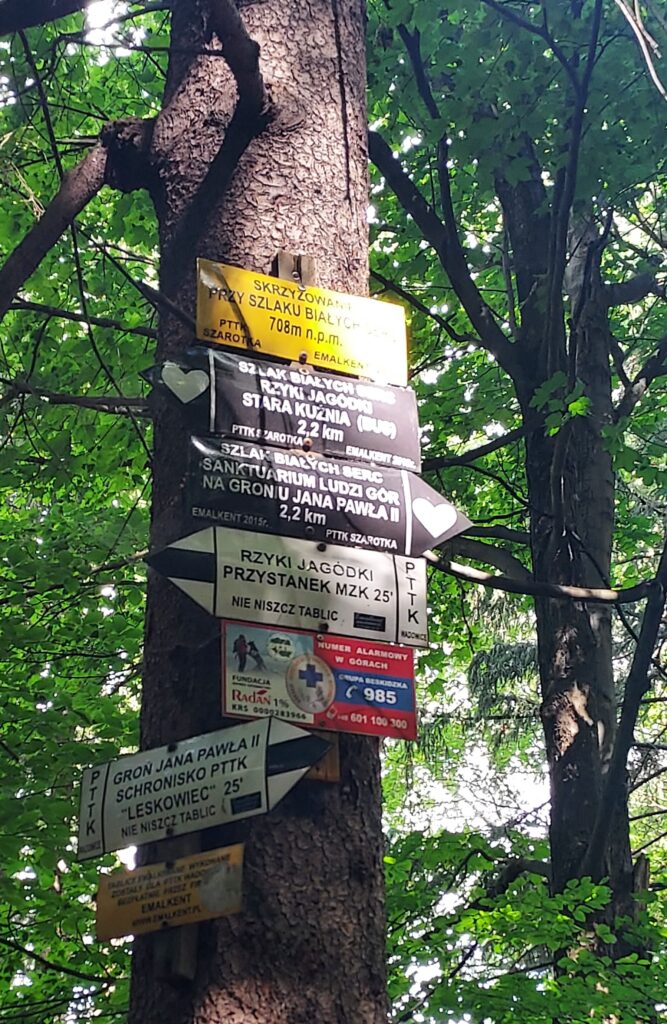 Po przejściu około 600 metrów dochodzimy do rozwidlenia obok kapliczki zawieszonej na drzewie. Kierujemy się w górę nadal czarnym i serduszkowym szlakiem i po pokonaniu kolejnych stu metrów dochodzimy do skrzyżowania przy Szlaku Białych Serc.W tym miejscu mamy wybór – możemy kontynuować wspinanie czarnym szlakiem – ostro w górę, albo zdecydować się na łagodniejszy szlak Białych Serc. Tym razem, z czystej ciekawości, zdecydowaliśmy się na drugi wybór.