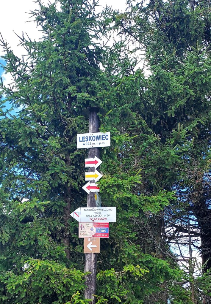 Do szczytu Leskowca zostaje nam jeszcze pokonanie dystansu 800 metrów. Od schroniska kierujemy się czerwonym szlakiem i przechodzimy przez Przełęcz Władysława Midowicza (866 m n.p.m.) – do niej dojdziemy w pierwszej kolejności, jeśli na dole wybierzemy szlak czarny, a nie serduszkowy. Po około 20 minutach dochodzimy do szczytu Leskowca. Już z daleka dobrze widoczny jest krzyż ustawiony na jego szczycie.