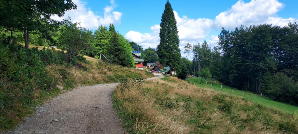 Czarny szlak na Leskowiec ma swój początek w przysiółku Rzyki-Jagódki. My postanowiliśmy podjechać trochę bliżej – do osiedla Rzyki-Mydlarze, gdzie zlokalizowany jest parking nadleśnictwa Andrychów (mapkę wklejam poniżej). Co ważne, parking jest udostępniany jedynie w dni wolne od pracy i nie należy do największych, ale w razie potrzeby na terenie prywatnych posesji zlokalizowane są parkingi płatne. My przyjechaliśmy dosyć późno i musieliśmy skorzystać z prywatnego parkingu, a za cały dzień zapłaciliśmy 15 złotych (2025).