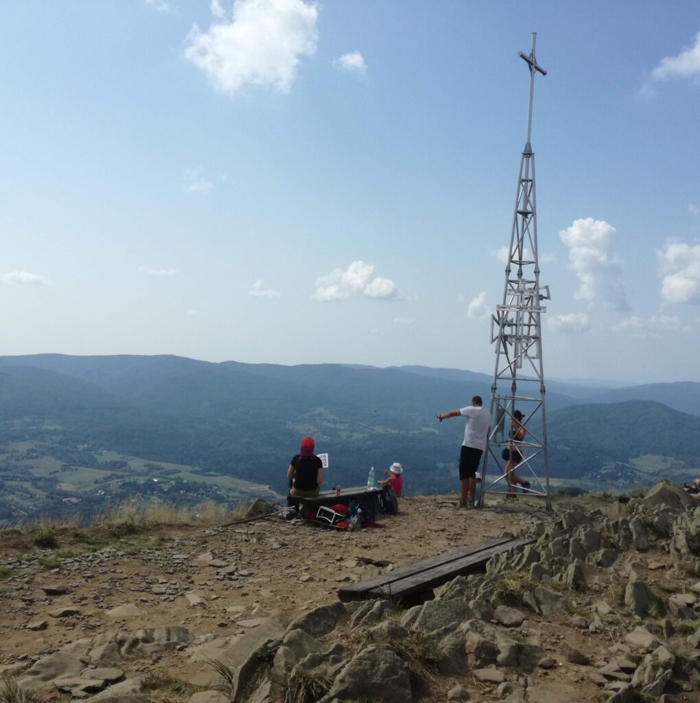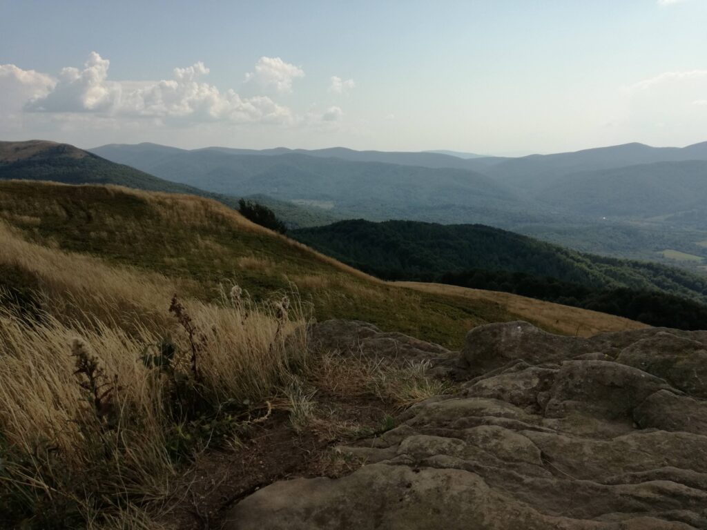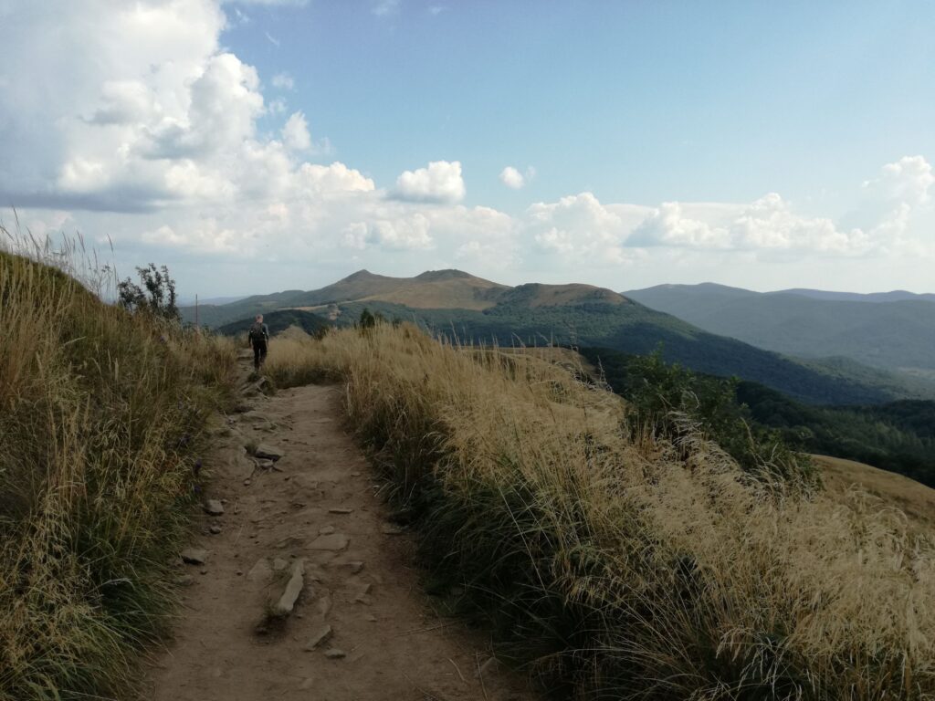 Podobnie jak w przypadku żółtego szlaku, wciąż pozostajemy w granicach Bieszczadzkiego Parku Narodowego, więc musimy opłacić bilet wstępu. Szlak dalej wiedzie przez las, ogromne kwiaty łopianu, aby na koniec przywitać nas końcowym podejściem i mnóstwem schodów, na które musimy się wdrapać. My pokonywaliśmy to podejście w upalny, sierpniowy dzień. Jeśli macie możliwość, wybierzcie sobie ten szlak na nieco niższe temperatury.