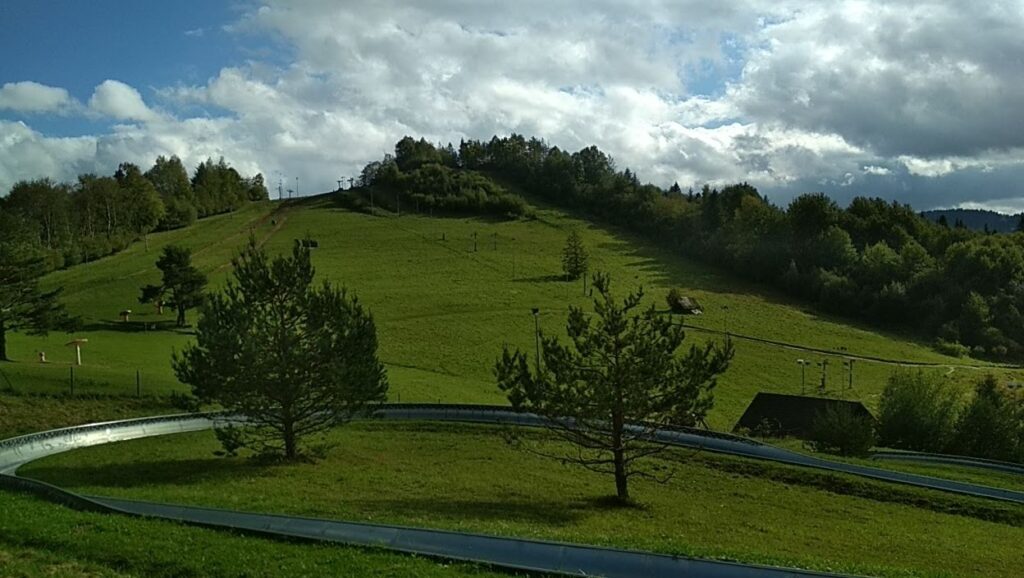 Istnieje kilka wariantów dotarcia na szczyt, a my tym razem (ze względu na kapryśną pogodę) wybraliśmy wariant krótszy – część szlaku pokonaliśmy kolejką krzesełkową. Wędrówkę na Wysoki Wierch możecie sobie bowiem znacznie przyspieszyć, wyjeżdżając na szczyt Palenicy (722 m n.p.m.), która oddalona jest od Wysokiego Wierchu o około 5,3 km.